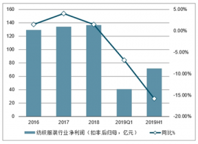 2016-2019年上半年中國紡織服裝行業(yè)凈利潤(扣非后歸母,億元)