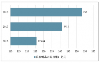 2017年我國乳膠制品行業市場規模約241.1億元,同比2016年的225.65億元增長了6.85%。2019年我國乳膠制品行業市場規模約253億元