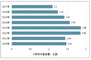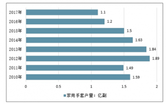 2016年我國家用手套產量達到1.2億副, 2017年家用手套產量1.1億副,比2016年減少0.1億副。