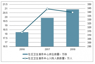 2016-2018年我國社區衛生服務中心入院人數數量及床位數量情況