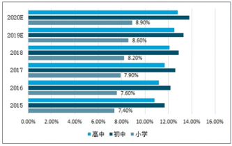 根據2017年相關數據顯示,民辦學校在中國整體教育體系的滲透率有逐步上升趨勢,預計到2020年,民辦小學,初中,高中在中國整體基礎教育體系中的滲透率有望達到8.9%,13.8%,12.8%。民辦教育發展勢頭向好,隨著家長對民辦教育接受度逐步增加,民辦教育已經成為教育二業不可或缺的一部分,未來越來越多的學校將逐步側重差異化教學,向特色化辦學模式轉變,隨著行業的成熟,優質資源進一步整合,品牌效應會逐步顯現。