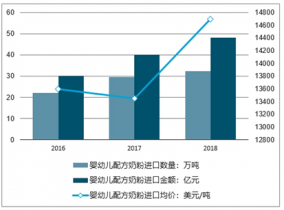 2016-2018年我國嬰幼兒配方奶粉進口數量、金額及均價情況