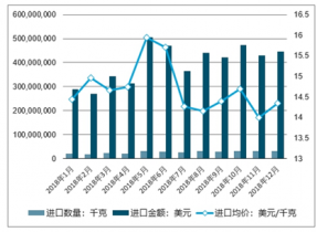 2019年12月進口嬰配粉3.1萬噸,同比減少4.7%;進口額4.45億美元,同比增長7%;平均價格為14349美元/噸,同比增長12.3%。