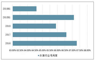 2016-2019年上半年中國(guó)女裝行業(yè)毛利率情況