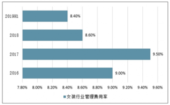 2016-2019年上半年中國女裝行業(yè)管理費用率