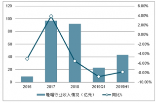 2016-2019年上半年中國(guó)鞋帽行業(yè)收入情況(億元)
