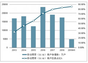 2013-2019年中國移動寬帶(3G/4G)用戶發(fā)展情況