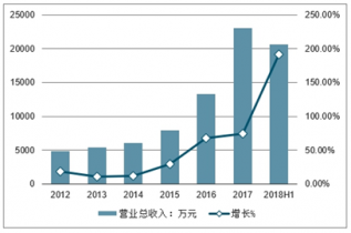 八億時空2012-2018H1營業收入及增速(萬元)