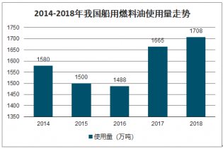 2014-2018年我國(guó)船用燃料油使用量走勢(shì)