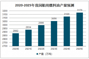 2020-2025年我國(guó)船用燃料油產(chǎn)量預(yù)測(cè)