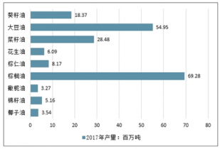 2017年全球主要食用油產(chǎn)量情況(百萬噸)