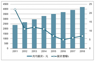 2011-2018我國(guó)建筑業(yè)農(nóng)民工月均薪資、薪資增幅
