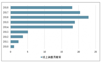 2010-2018年中國寵物食品線上銷售貢獻率增長