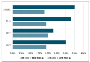 2016-2019年上半年中國棉紡行業(yè)銷售、管理費用率