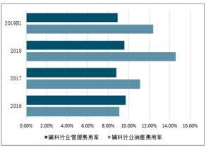 2016-2019年上半年中國輔料行業銷售、管理費用率