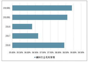 2016-2019年上半年中國輔料行業毛利率情況