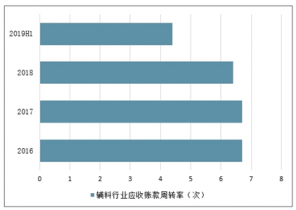 2016-2019年上半年中國輔料行業應收賬款周轉率(次)