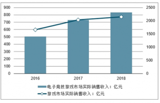 2016-2018年中國游戲市場實際銷售收入及電子競技游戲銷售收入走勢