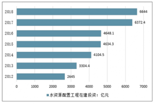 2017年中國水資源配置工程在建投資規(guī)模6372.4億元。其中,工程開工的有云南滇中引水、內蒙古引綽濟遼、吉林西部供水、山西中部引黃水源、黑龍江錦西灌區(qū)等。2019年中國水資源配置工程在建投資規(guī)模達6644億元。