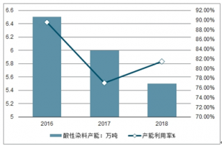 2016-2018年中國酸性染料行業產能及產能利用率走勢