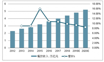 2012-2020年中國(guó)餐飲收入及增長(zhǎng)走勢(shì)