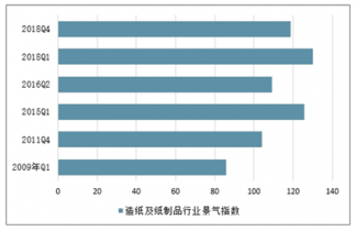 從國家統(tǒng)計(jì)局的行業(yè)景氣指數(shù)來看,僅2009年我國造紙及紙制品行業(yè)景氣指數(shù)低于100,處于不景氣狀態(tài);2010年以來我國造紙及紙制品行業(yè)景氣指數(shù)始終高于100,均處于景氣狀態(tài)。但值得注意的是,2019年以來,造紙及紙制品行業(yè)景氣指數(shù)就逐漸下滑,2019年一季度景氣指數(shù)為130,2018四季度末景氣指數(shù)為118.6,但行業(yè)景氣指數(shù)仍處于較高區(qū)間。