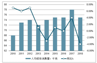 2010-2018年中國平均紙張消費(fèi)量走勢