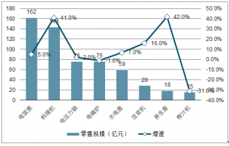 2018廚房小家電主要品類的零售規(guī)模及增速