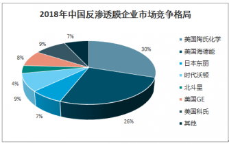 我國反滲透膜行業市場集中度高,主要因為反滲透膜生產技術壁壘高,中小企業研發實力較弱,資金實力較差,進入反滲透膜生產領域的難度較大。2018年反滲透膜行業毛利率約50%,高利潤將會促使現有的企業進行規模擴張,吸引更多的資本和企業進入。目前我國具有自主研發實力的企業僅有時代沃頓、碧水源、津膜科技等幾家。