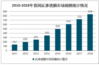 2010-2018年我國反滲透膜市場規模統計情況