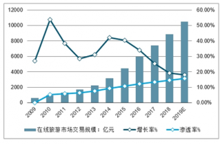 2009-2019年中國在線旅游市場交易規(guī)模走勢