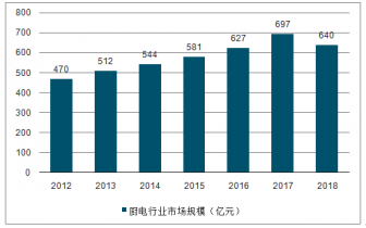 2012-2018年我國廚電電器行業市場規模(單位:億元)