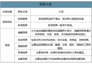 1.1 廚具設備行業定義及分類