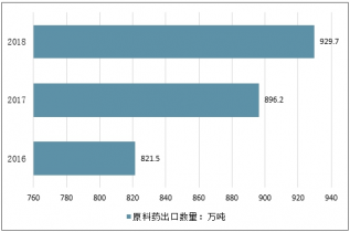 2016-2018年中國原料藥出口數量分析