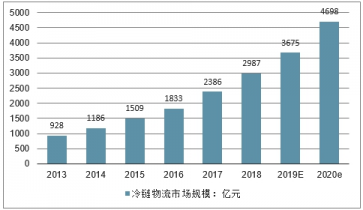 2017年中國冷鏈物流市場規(guī)模為2386億元,根據(jù)預計2020年,市場規(guī)模將達到4700億元,年增速保持在25%左右。