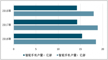2016-2018年我國手機(jī)及智能機(jī)產(chǎn)量情況