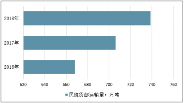 2016-2018年我國(guó)民航貨郵運(yùn)輸量