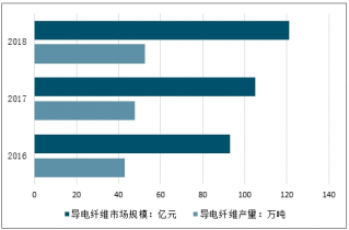 2016-2018年中國導電纖維產量及規模走勢