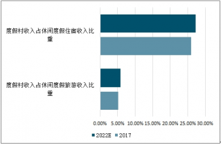 中國休閑度假旅游市場的收入主要由住宿、交通、餐飲、購物及娛樂組成。2013年至2017年,休閑度假旅游住宿收入比例由18.0%上升至20.0%;到2022年預計將進一步提升至21.5%。其中,度假村市場收入占休閑旅游住宿市場約25.9%。中國休閑旅游度假村市場收入由2013年的人民幣620億元增至2017年的人民幣1,286億元,復合年增長率為20.0%,預計2017年至2022年復合年增長率為15.6%,達到2,659億元。