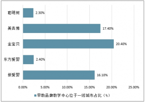 前5大早教品牌教學中心位于一線城市占比(%)