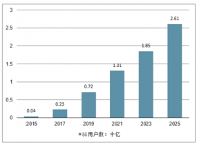 2015-2025全球5G用戶數(shù)預(yù)測(cè)(十億)