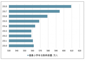2017年我國(guó)普通小學(xué)專(zhuān)任教師594.5萬(wàn)人,2019年我國(guó)普通小學(xué)專(zhuān)任教師超過(guò)600萬(wàn)人,2017年底全國(guó)共有初中教師355萬(wàn)人。