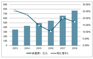 2013-2018永輝超市銷售額及同比增長走勢