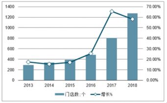 2013-2018永輝超市門店數及增長走勢