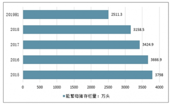 2015-2019中國(guó)能繁母豬存欄量走勢(shì)