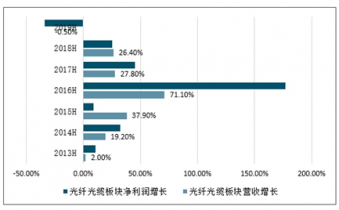 2013H-2019H光纖光纜板塊營(yíng)收增長(zhǎng)及凈利潤(rùn)增長(zhǎng)情況
