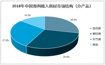 2018年中國骨科植入耗材市場結(jié)構(gòu)(分產(chǎn)品)