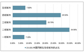 2018年上半年中國網(wǎng)吧在各級城市的占比