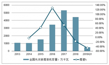 2013-2019年Q1全國光伏新增裝機容量統(tǒng)計及增長情況