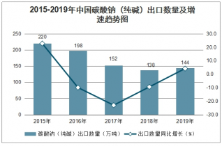 2015-2019年中國碳酸鈉(純堿)出口數(shù)量及增速趨勢圖